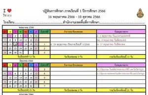 แจกฟรี ปฏิทินการศึกษา ปฏิทินนับวันเรียน ปีการศึกษา 2566 (ภาคเรียนที่ 1-2)