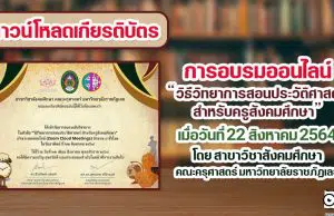 อบรมฟรี มีเกียรติบัตร “วิธีวิทยาการสอนประวัติศาสตร์ สำหรับครูสังคมศึกษา” วันที่ 22 สิงหาคม 2564 โดย สาขาวิชาสังคมศึกษา คณะครุศาสตร์...