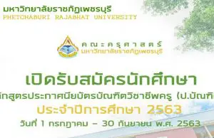 มหาวิทยาลัยราชภัฏเพชรบุรี เปิดรับสมัคร หลักสูตร ป. บัณฑิตวิชาชีพครู 1 ก.ค. - 30 ก.ย. 63