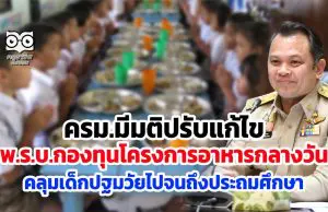 ครม.มีมติปรับแก้ไขพ.ร.บ.กองทุนเพื่อโครงการอาหารกลางวันในโรงเรียนประถมศึกษา ให้ครบคลุมเด็กปฐมวัยโรงเรียนในกำกับของรัฐ