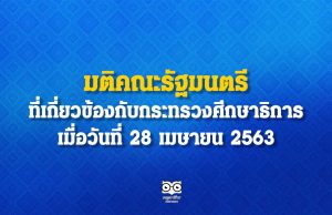 มติคณะรัฐมนตรี ที่เกี่ยวข้องกับกระทรวงศึกษาธิการ เมื่อวันที่ 28 เมษายน 2563