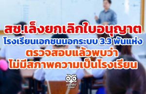 สช.เล็งยกเลิกใบอนุญาต โรงเรียนเอกชนนอกระบบ 3.3 พันแห่ง ตรวจสอบแล้วพบว่า ไม่มีสภาพความเป็นโรงเรียน