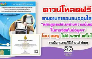 ดาวน์โหลดฟรี!! รายงานการอบรมออนไลน์ “หลักสูตรเสริมสร้างความเข็มแข็ง ในการจัดเก็บข้อมูลฯ” โดย สพฐ. ไฟล์ word แก้ไขได้