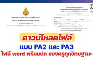 ดาวน์โหลด แบบ PA2 และ PA3 ไฟล์ word พร้อมปก ของครูทุกวิทยฐานะ สำหรับปริ้นต์ให้กรรมการประเมิน PA