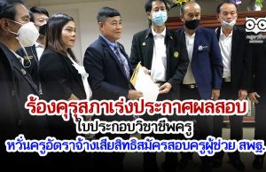 ร้องคุรุสภาเร่งประกาศผลสอบใบประกอบวิชาชีพครู หวั่นครูอัตราจ้างเสียสิทธิสมัครสอบครูผู้ช่วย สพฐ.