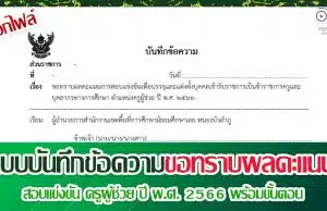 ดาวน์โหลด แบบบันทึกข้อความขอทราบผลคะแนนสอบแข่งขัน ครูผู้ช่วย ปี พ.ศ. 2566 พร้อมขั้นตอน
