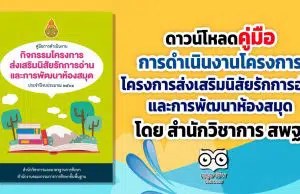 ดาวน์โหลดไฟล์ คู่มือการดำเนินงานกิจกรรม โครงการส่งเสริมนิสัยรักการอ่านและการพัฒนาห้องสมุด โดยสำนักวิชาการและมาตรฐานการศึกษา สพฐ.