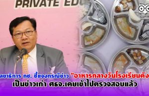 เลขาธิการ กช. ชี้แจงกรณีข่าว อาหารกลางวันโรงเรียนดัง เป็นข่าวเก่า ศธจ.เคยเข้าไปตรวจสอบแล้ว