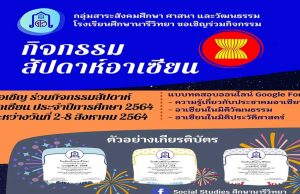 กิจกรรมเนื่องในกิจกรรมสัปดาห์อาเซียน ปีการศึกษา 2564 กับ 3 แบบทดสอบออนไลน์ ผ่านร้อยละ 80 ผู้ร่วมทดสอบจะได้รับเกียรติบัตรทางอีเมล โดยกลุ่มสาระสังคมศึกษาฯ โรงเรียนศึกษานารีวิทยา