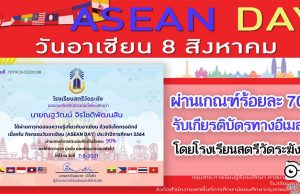 แบบทดสอบออนไลน์ รอบรู้อาเซียน ในสัปดาห์อาเซียน 2021 ผ่านเกณฑ์ รับเกียรติบัตรทางอีเมล์ โดยโรงเรียนปทุมธานี “นันทมุนีบำรุง”