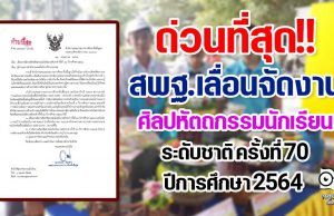 ด่วนที่สุด!! สพฐ.เลื่อนจัดงานศิลปหัตถกรรมนักเรียน ระดับชาติ ครั้งที่ 70 ปีการศึกษา 2564 ออกไปเป็นเดือนธันวาคม 2565