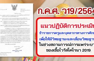 ว19/2564 แนวปฏิบัติการประเมินข้าราชการครูและบุคลากรทางการศึกษาเพื่อให้มีวิทยฐานะและเลื่อนวิทยฐานะ ในช่วงสถานการณ์การแพร่ระบาดของเชื้อไวรัสโคโรนา 2019