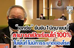 เอกชัย ยืนยัน 1 มิถุนายนนี้ สามารถเปิดเรียนได้ 100% ในพื้นที่ไม่มีการระบาดของโรค