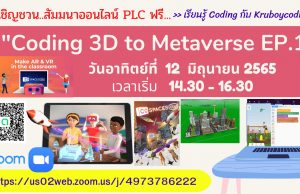 ขอเชิญอบรมออนไลน์ฟรี!! หัวข้อ "Coding 3D to Metaverse EP.1 " วันอาทิตย์ที่ 12 มิถุนายน พ.ศ. 2565 เวลา 14.30 - 16.30 รับเกียรติบัตรฟรี โดย Kruboycoding