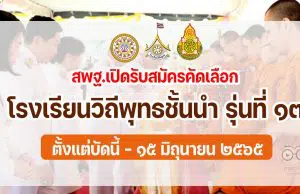 ขอเชิญโรงเรียนวิถีพุทธ สมัครเข้ารับการคัดเลือกเป็นโรงเรียนวิถีพุทธชั้นนำ รุ่นที่ ๑๓ ตั้งแต่บัดนี้ - ๑๕ มิถุนายน ๒๕๖๕