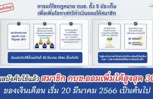 มีผลบังคับใช้แล้ว สมาชิก กบข.ออมเพิ่มได้สูงสุด 30% ของเงินเดือน เริ่ม 20 มีนาคม 2566 เป็นต้นไป