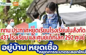 กทม.ประกาศหยุดเรียนโรงเรียนในสังกัด 437 โรงเรียน และศูนย์เด็กเล็ก 292 ศูนย์