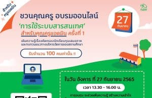 กสศ.เปิดอบรมออนไลน์ “การใช้ระบบสารสนเทศ” สำหรับคุณครูแอดมิน ครั้งที่ 1 วัน อังคาร ที่ 27 กันยายน 2565...
