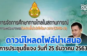 ดาวน์โหลดไฟล์นำเสนอ การจัดการเรียนการสอนทางไกล ในสถานการณ์แพร่ระบาด COVID-19 วันที่ 25 ธันวาคม 2563