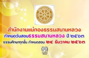 สํานักงานแม่กองธรรมสนามหลวง ประกาศวันสอบธรรมสนามหลวง ธรรมศึกษา ปีการศึกษา ๒๕๖๔ ในวันศุกร์ที่ ๒๖ พฤศจิกายน ๒๕๖๔