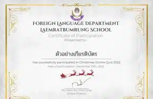 กิจกรรมตอบคำถามวันนคริสต์มาส ผ่านเกณฑ์ 80% รับเกียรติบัตรทางอีเมล โดยกลุ่มสาระฯ ภาษาต่างประเทศ โรงเรียนเมืองหลังสวน