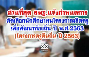 ด่วนที่สุด สพฐ.แจ้งกำหนดการ คัดเลือกนักศึกษาทุนโครงการผลิตครูเพื่อพัฒนาท้องถิ่น ปี พ.ศ.2563