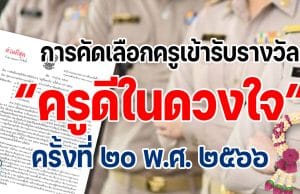 การคัดเลือกครูเข้ารับรางวัลโครงการ ครูดีในดวงใจ ครั้งที่ ๒๐ พ.ศ. ๒๕๖๖
