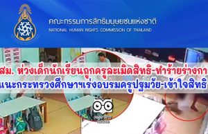 กสม. ห่วงเด็กนักเรียนถูกครูละเมิดสิทธิ-ทำร้ายร่างกาย แนะกระทรวงศึกษาฯ เร่งอบรมครูปฐมวัย-เข้าใจสิทธิ-มีจิตวิญญาณครูและทักษะดูแลเด็ก