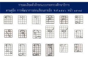 รายละเอียดตัวอักษรแบบกระทรวงศึกษาธิการ ตามคู่มือ การพัฒนาการสอนเขียนลายมือ พ.ศ.๒๕๔๐