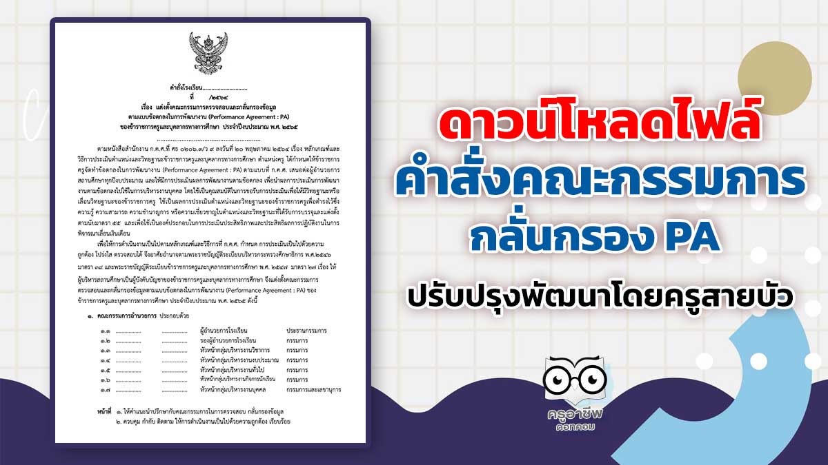 ดาวน์โหลดไฟล์ ตัวอย่างคำสั่งคณะกรรมการกลั่นกรอง PA ปรับปรุงพัฒนาโดยครูสายบัว