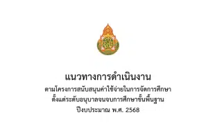 ดาวน์โหลดแนวทางการดำเนินงานเงินอุดหนุนรายหัว 2568 โครงการสนับสนุนค่าใช้จ่ายในการจัดการศึกษาขั้นพื้นฐาน ปีงบประมาณ พ.ศ. 2568