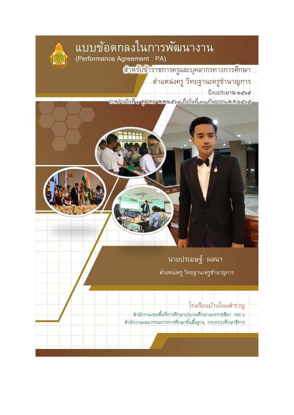 แจกไฟล์งานฟรี การเผยแพร่ข้อตกลงในการพัฒนางาน PA ของคุณครูปรเมษฐ์ ผลนา ครูชำนาญการ โรงเรียนบ้านโนนสำราญ
