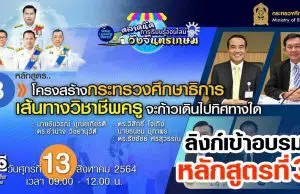 ลิงก์เข้าอบรมหลักสูตรที่ 3 “โครงสร้างศธ. เส้นทางสิชาชีพครูจะก้าวเดินไปทิศทางใด” ตลาดนัดการเรียนรู้ออนไลน์วังจันทรเกษม วันที่ 13 สิงหาคม 2564 เวลา 09.00 น.