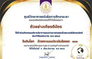 แบบทดสอบออนไลน์ เรื่อง วันดินโลก ประจำปี 2568 ผ่านเกณฑ์ 60% รับเกียรติบัตรทางอีเมล โดยศูนย์วิทยาศาสตร์เพื่อการศึกษายะลา