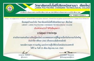 แบบทดสอบออนไลน์ กิจกรรมตอบคำถามจากหนังสือ Quiz 2/2565 ผ่านเกณฑ์ร้อยละ 80 ขึ้นไป จะได้รับเกียรติบัตรจากวิทยาลัยอาชีวศึกษาเชียงใหม่ รับเกียรติบัตรทางอีเมล