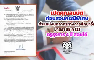 เปิดคุณสมบัติ ก่อนสอบกรณีพิเศษ ตำแหน่งบุคลากรทางการศึกษาอื่น มาตรา 38 ค (2) ครูธุรการ 4 ปี สอบได้