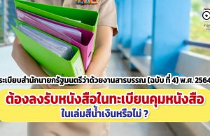 ตาม ระเบียบสํานักนายกรัฐมนตรีว่าด้วยงานสารบรรณ (ฉบับ ที่ 4) พ.ศ. 2564 จะต้องลงรับหนังสือในทะเบียนคุมหนังสือในเล่มสีน้ำเงินหรือไม่ ?