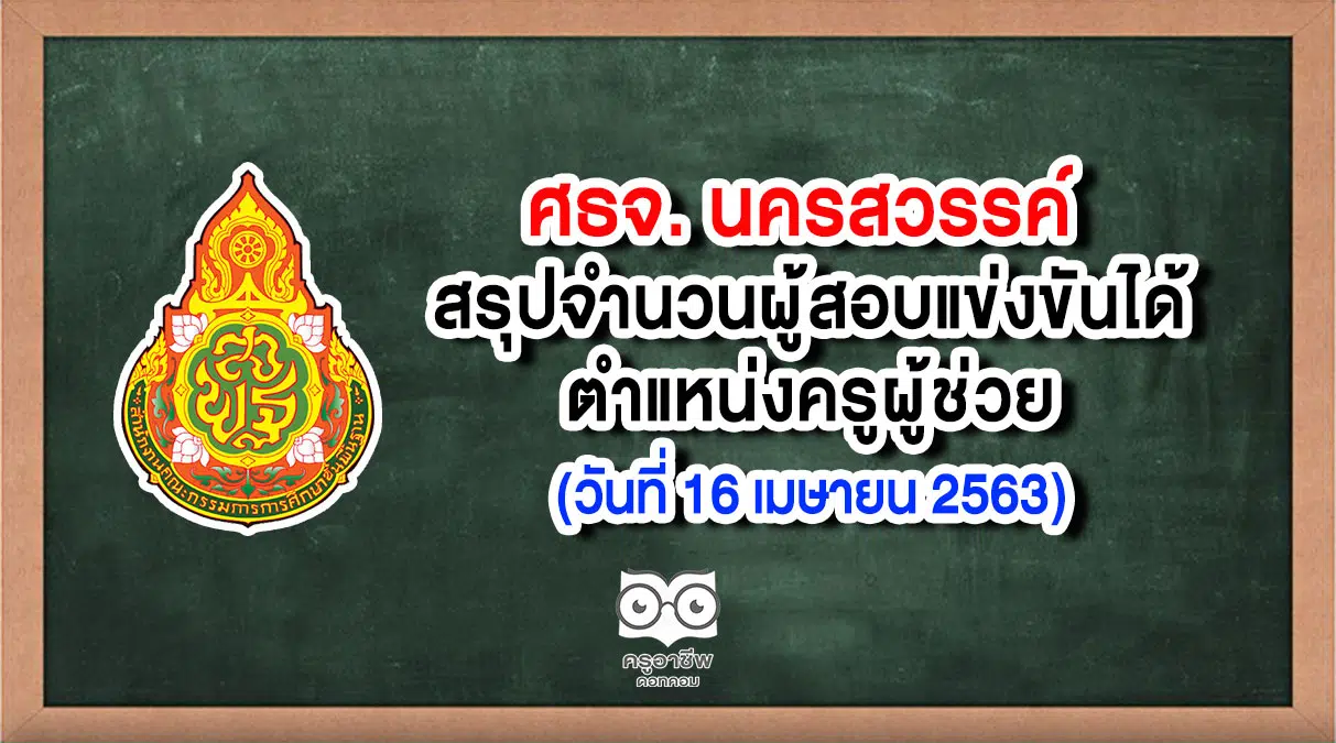 ศธจ นครสวรรค์ สรุปจำนวนผู้สอบแข่งขันได้ ตำแหน่งครูผู้ช่วย (วันที่ 16 เมษายน 2563)