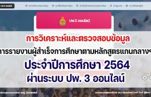 การวิเคราะห์และตรวจสอบข้อมูลการรายงานผู้สำเร็จการศึกษาตามหลักสูตรแกนกลางการศึกษาขั้นพื้นฐาน ประจำปีการศึกษา 2564 ผ่านระบบ ปพ. 3 ออนไลน์