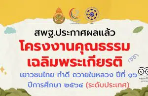สพฐ.ประกาศผล โครงงานคุณธรรมเฉลิมพระเกียรติ เยาวชนไทย ทำดี ถวายในหลวง ปีที่ ๑๖ ปีการศึกษา ๒๕๖๔ (ระดับประเทศ)