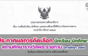 ศธ.ประกาศผลการคัดเลือกนักเรียน นักศึกษา และสถานศึกษา รางวัลพระราชทาน ปีการศึกษา 2564