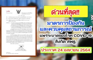 ประกาศ มาตรการป้องกันและควบคุมสถานการณ์แพร่ระบาดของโรคติดเชื้อไวรัสโคโรนา 2019 (COVID-19) ของสถานศึกษา และบุคลากรในสังกัด สพฐ. ลงวันที่ 24 เมษายน 2564