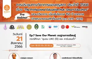 อบรมออนไลน์ EP. 7 เรื่อง “Save Our Planet: บนฐานการเรียนรู้” งานประชุมทางวิชาการของคุรุสภา ประจำปี 2566...