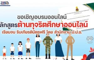 ขอเชิญเข้าร่วมอบรมออนไลน์ หลักสูตรต้านทุจริตศึกษาออนไลน์ ผ่านระบบแพลตฟอร์มต้านทุจริตศึกษา เรียนจบ รับเกียรติบัตรฟรี โดย สำนักงาน ป.ป.ช.