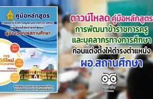 ดาวน์โหลด คู่มือหลักสูตร การพัฒนาข้าราชการครูและบุคลากรทางการศึกษาก่อนแต่งตั้งให้ดำรงตำแหน่ง ผอ.สถานศึกษา