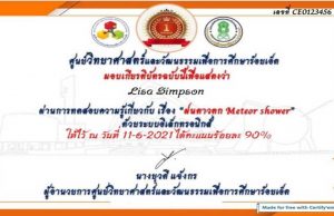 แบบทดสอบออนไลน์ความรู้ เรื่อง ฝนดาวตก ผ่านเกณฑ์ 80% รับเกียรติบัตรได้ที่อีเมล โดยศูนย์วิทยาศาสตร์และวัฒนธรรมเพื่อการศึกษาร้อยเอ็ด