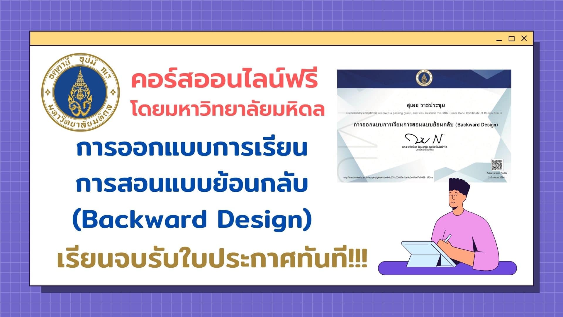 คอร์สออนไลน์ฟรี การออกแบบการเรียนการสอนแบบย้อนกลับ (Backward Design) เรียนจบรับใบประกาศทันที โดยมหาวิทยาลัยมหิดล