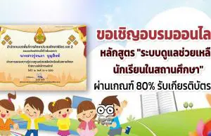ขอเชิญอบรมออนไลน์ หลักสูตร “ระบบดูแลช่วยเหลือนักเรียนในสถานศึกษา” ผ่านเกณฑ์ 80% รับเกียรติบัตรอัตโนมัติทางอีเมล์
