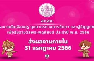 สกสค.ประกาศคัดเลือกครู บุคลากรทางการศึกษา และผู้มีคุณูปการ เพื่อรับรางวัลพระพฤหัสบดี ประจำปี 2566 ส่งผลงานภายใน 31 กรกฎาคม 2566
