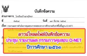 ดาวน์โหลดไฟล์ บันทึกข้อความ ประชุม รายงานผล กรรมการคุมสอบ การทดสอบทางการศึกษาระดับชาติขั้นพื้นฐาน (O-NET) ปีการศึกษา ๒๕๖๓